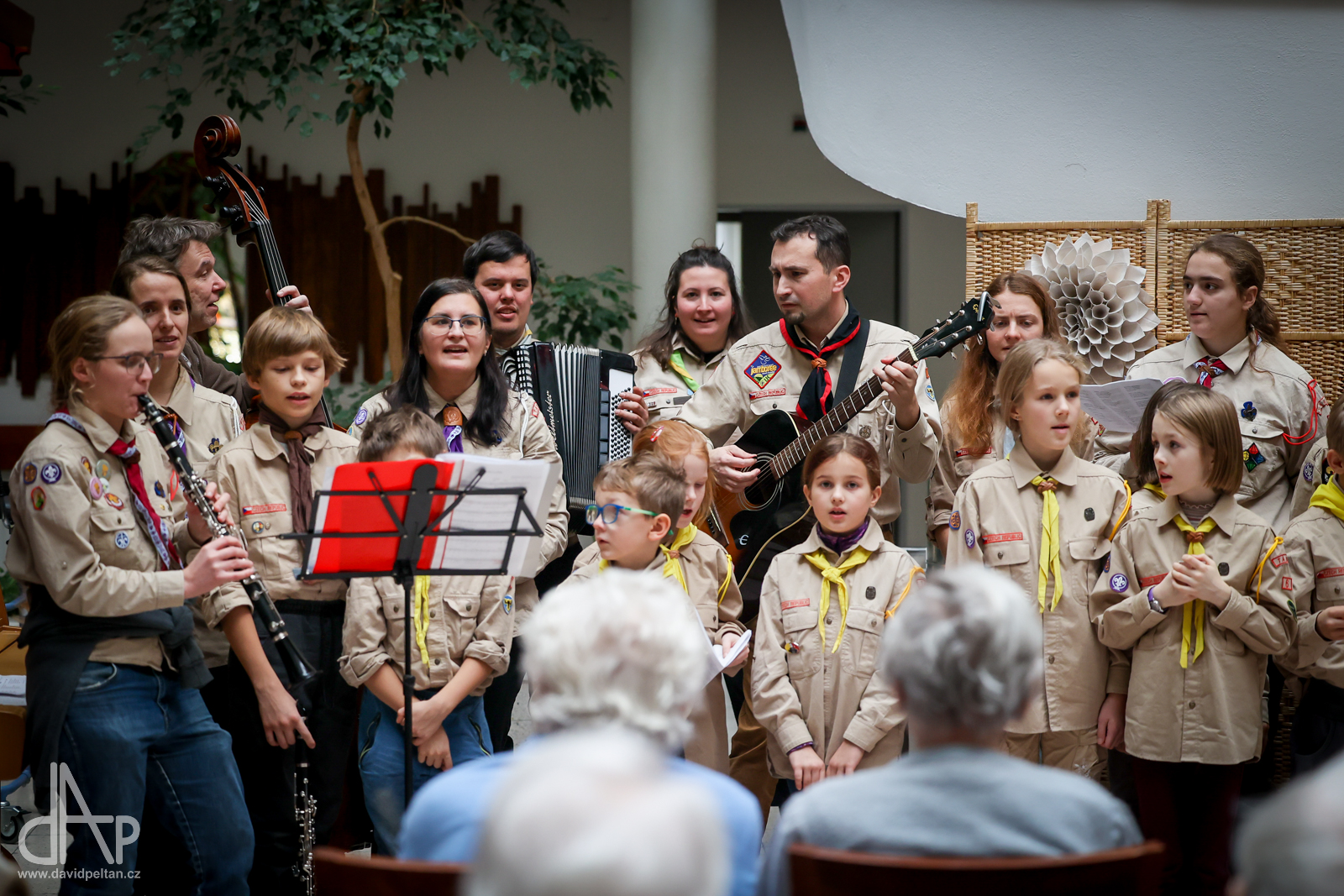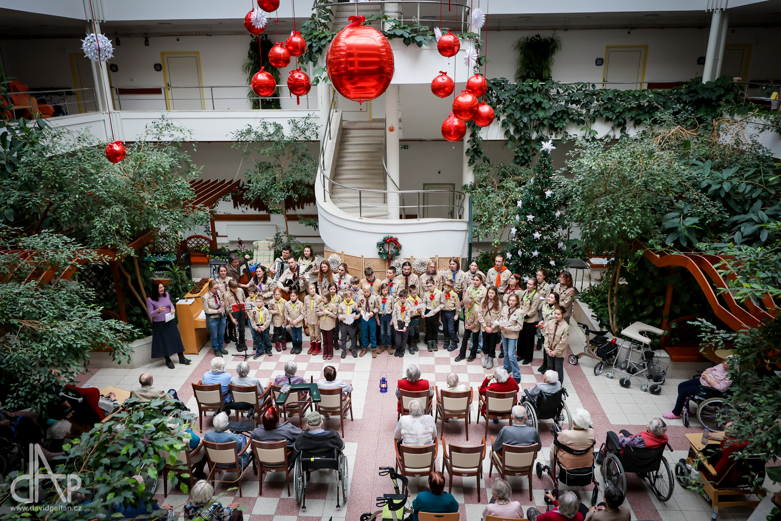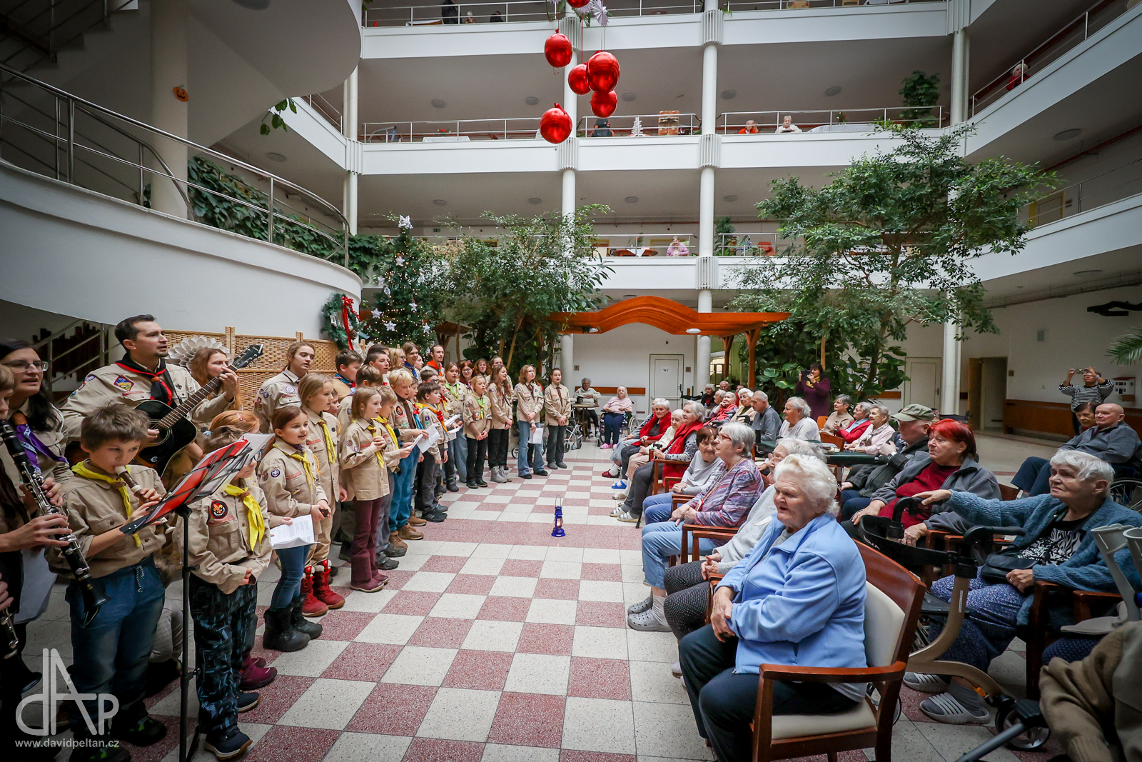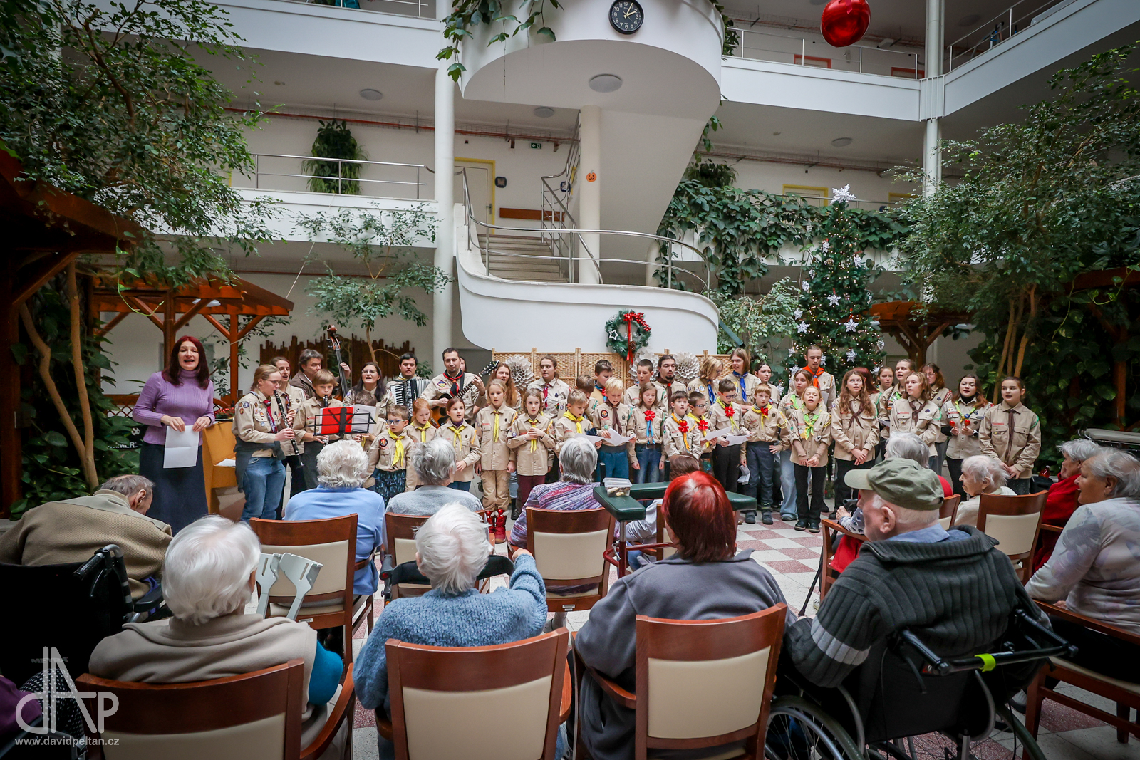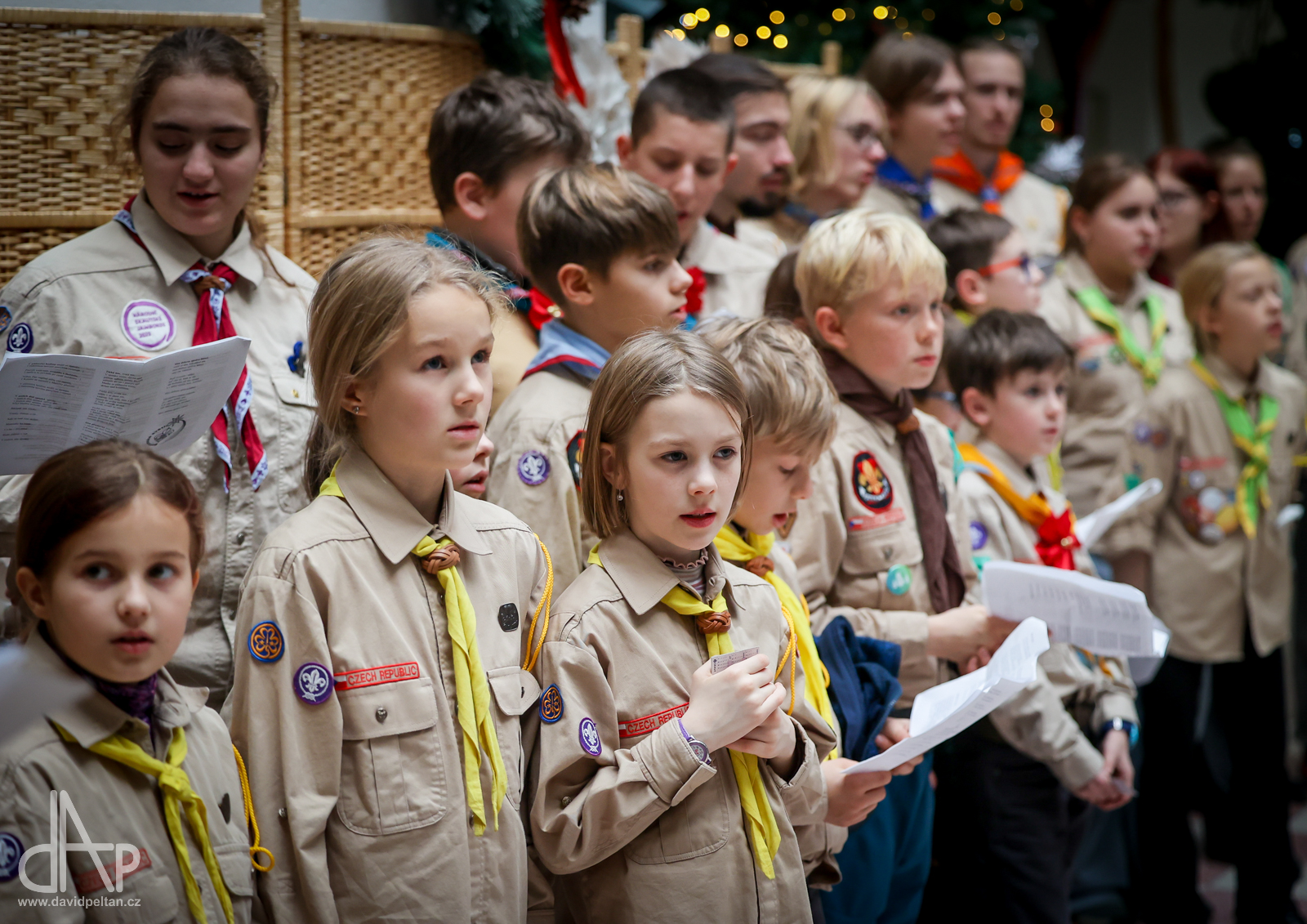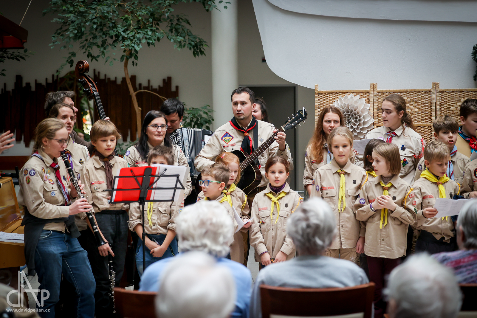 Skautský oddíl Kalich Tábor přivezl před Vánoci betlémské světlo na táborské vlakové nádraží. Další dny ho pak skauti roznášeli nejen do kostelů, ale i domů pro seniory, kde jim předávání světla zpříjemnili i hudebním vystoupením pod vedením Pavly Kohelové Jankové (foto z G-Centra Tábor). Oddíl Modříni Tábor pak na Štědrý den betlémské světlo za doprovodu krátkých blahopřání zástupců církví a hudebního vystoupení předával na táborském Žižkově náměstí.