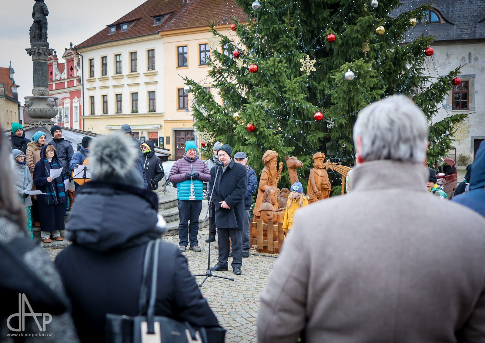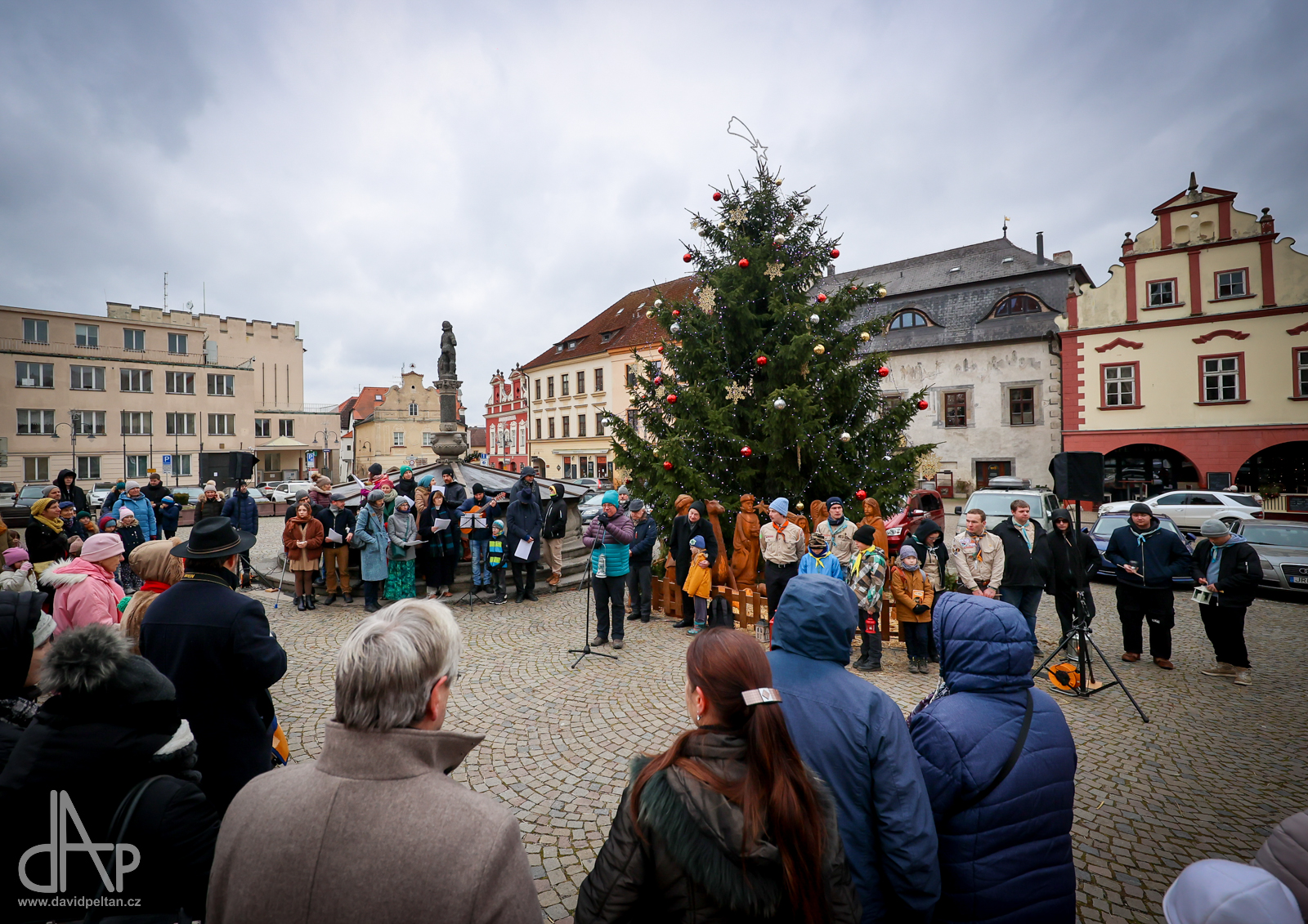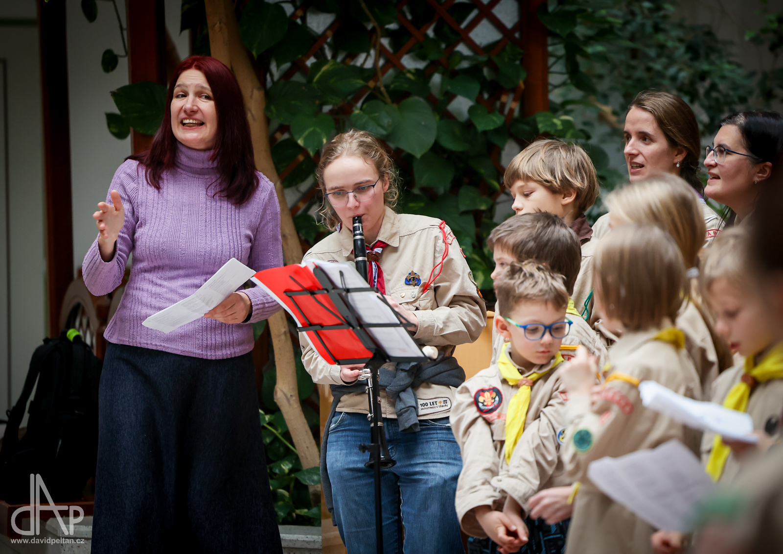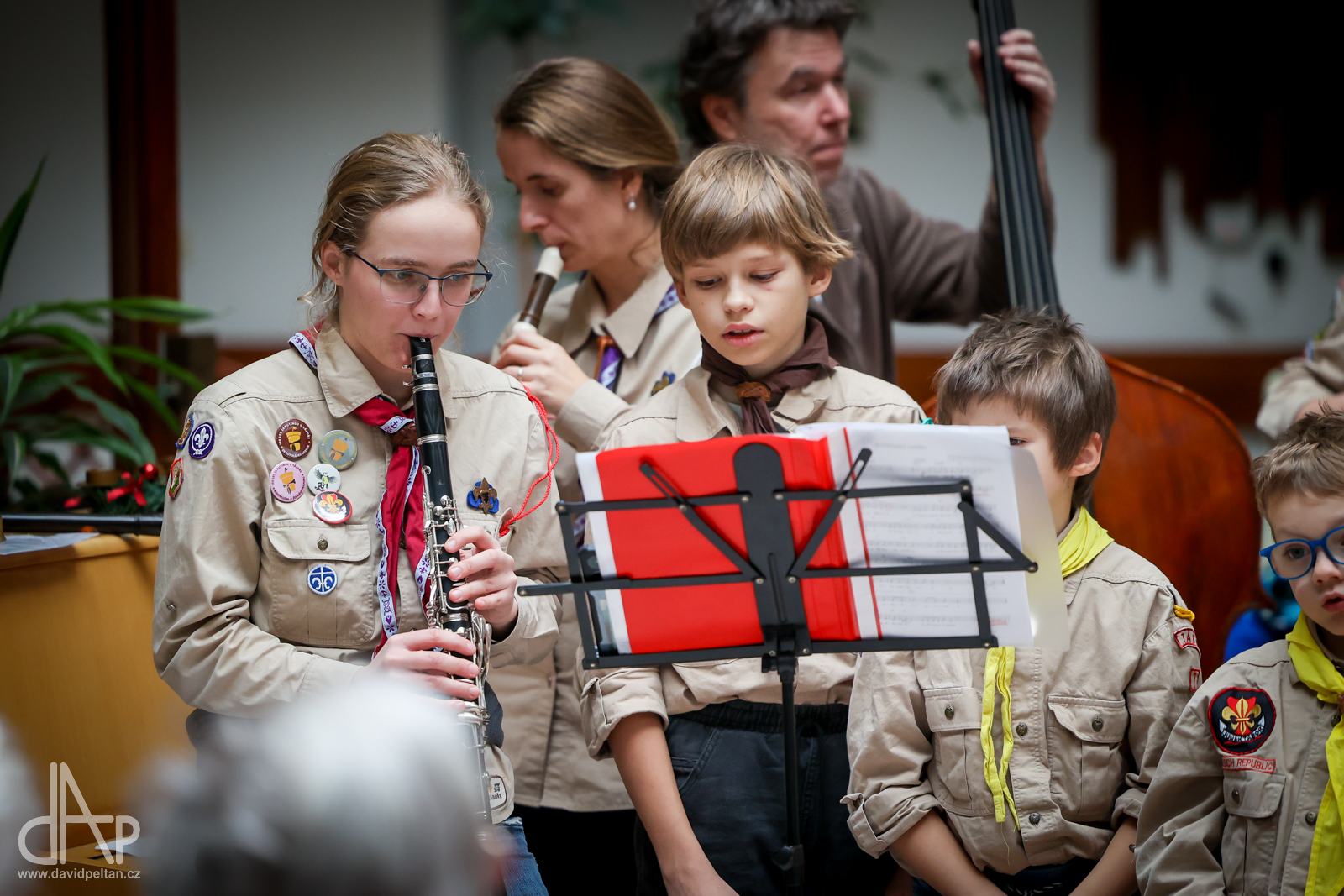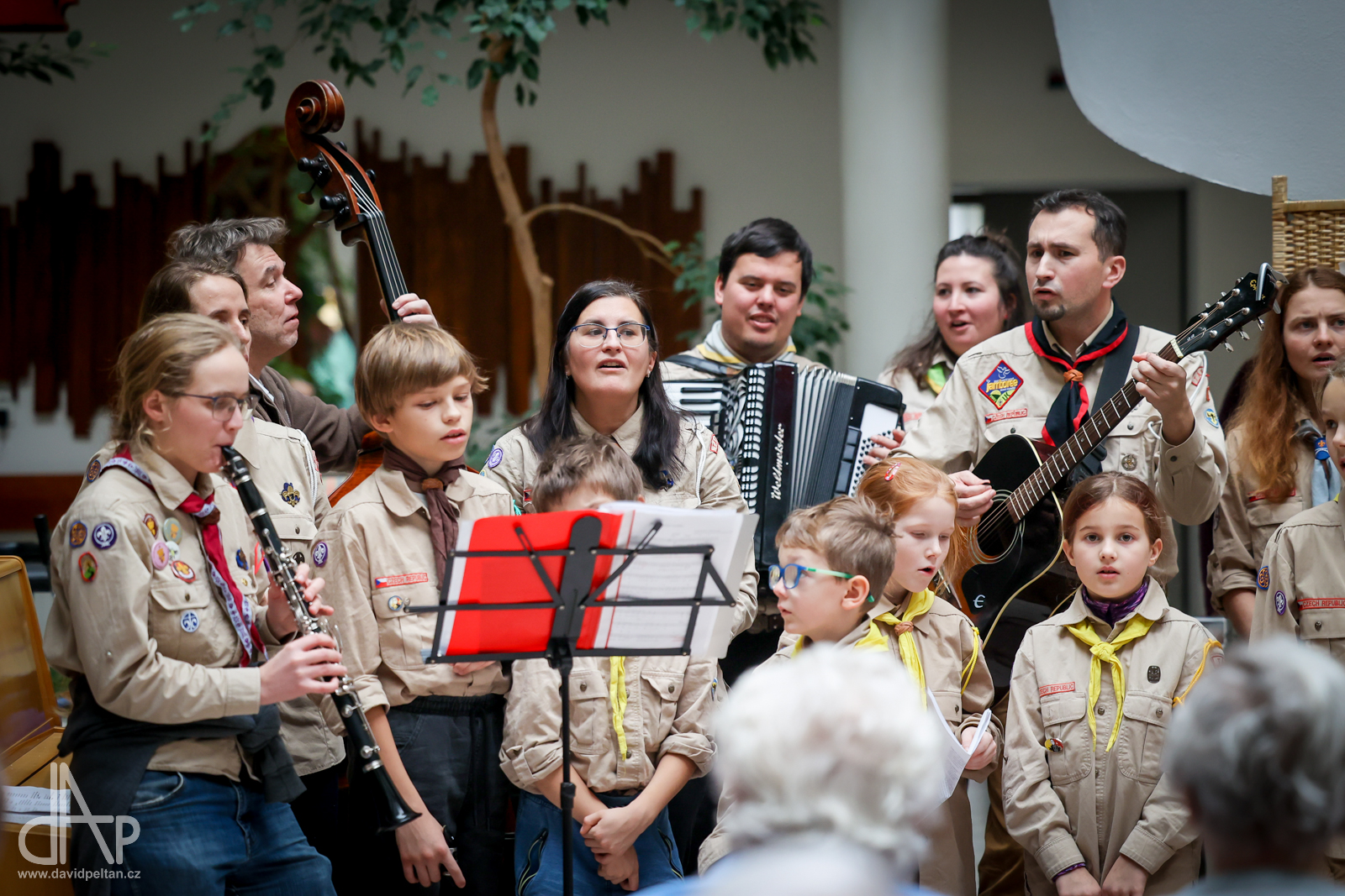 Skautský oddíl Kalich Tábor přivezl před Vánoci betlémské světlo na táborské vlakové nádraží. Další dny ho pak skauti roznášeli nejen do kostelů, ale i domů pro seniory, kde jim předávání světla zpříjemnili i hudebním vystoupením pod vedením Pavly Kohelové Jankové (foto z G-Centra Tábor). Oddíl Modříni Tábor pak na Štědrý den betlémské světlo za doprovodu krátkých blahopřání zástupců církví a hudebního vystoupení předával na táborském Žižkově náměstí.