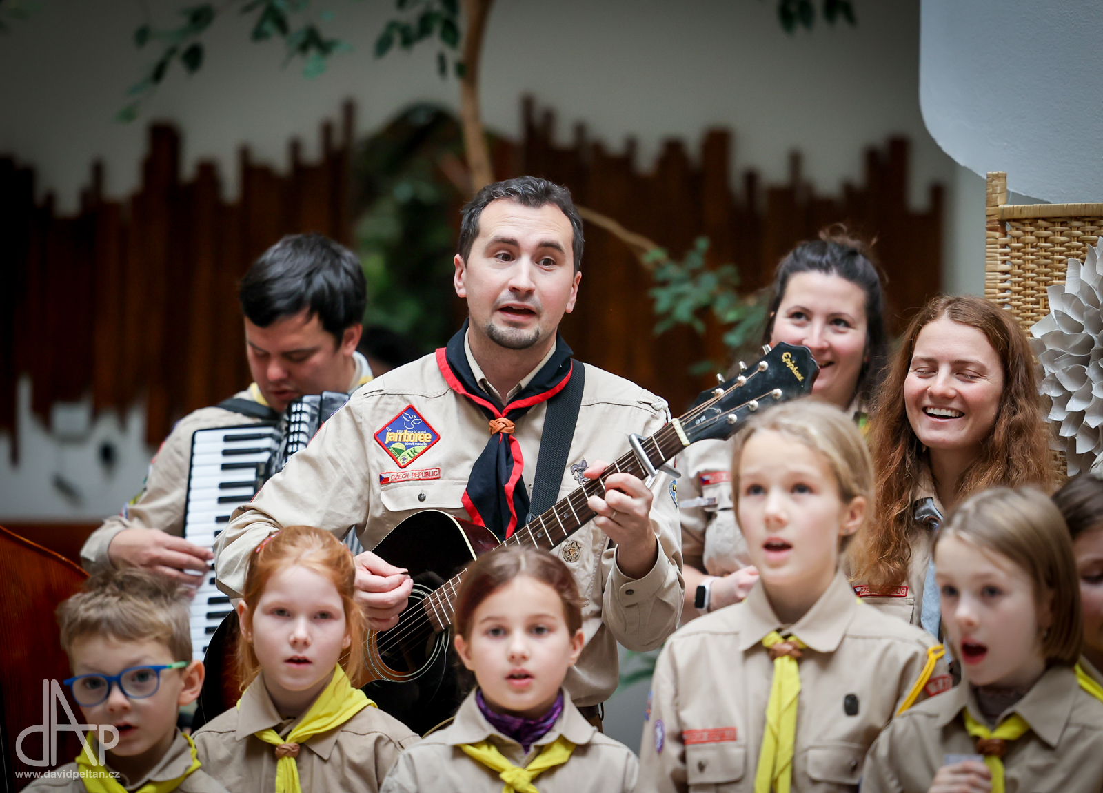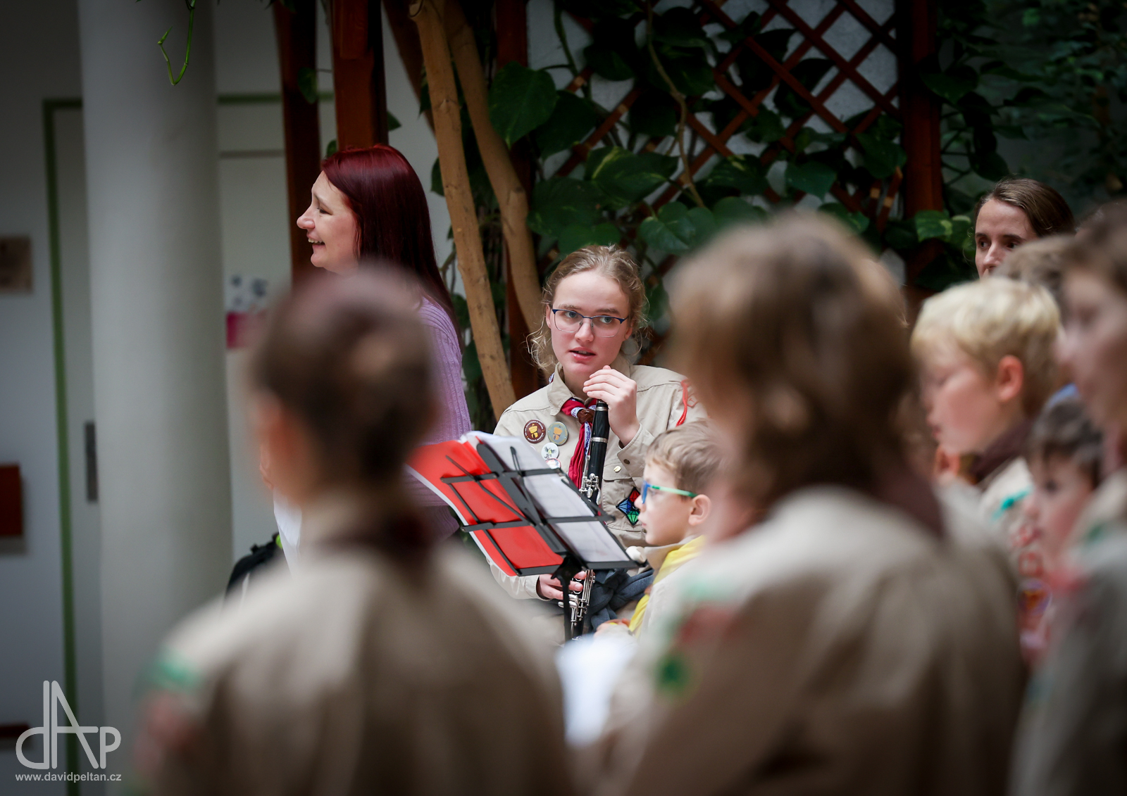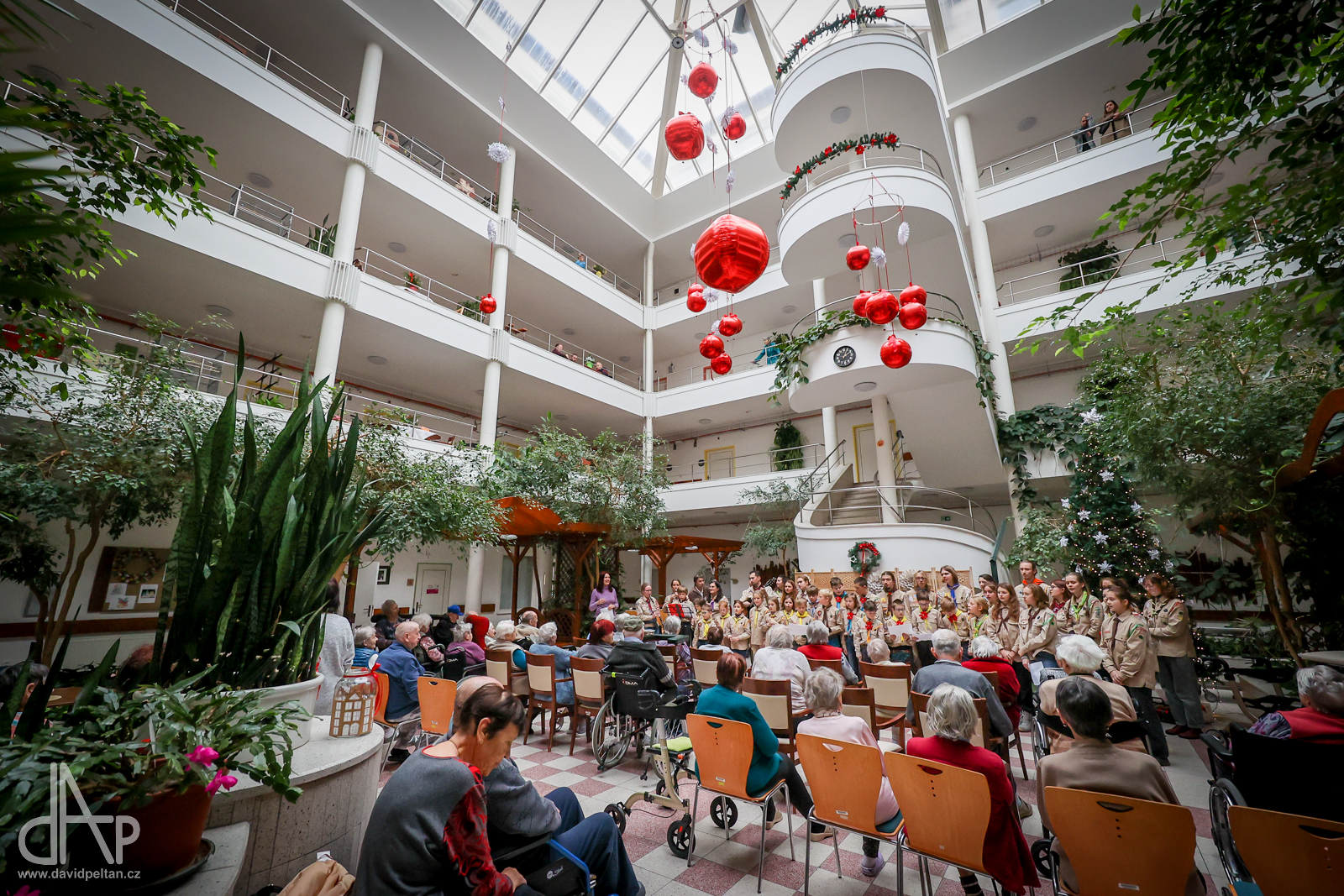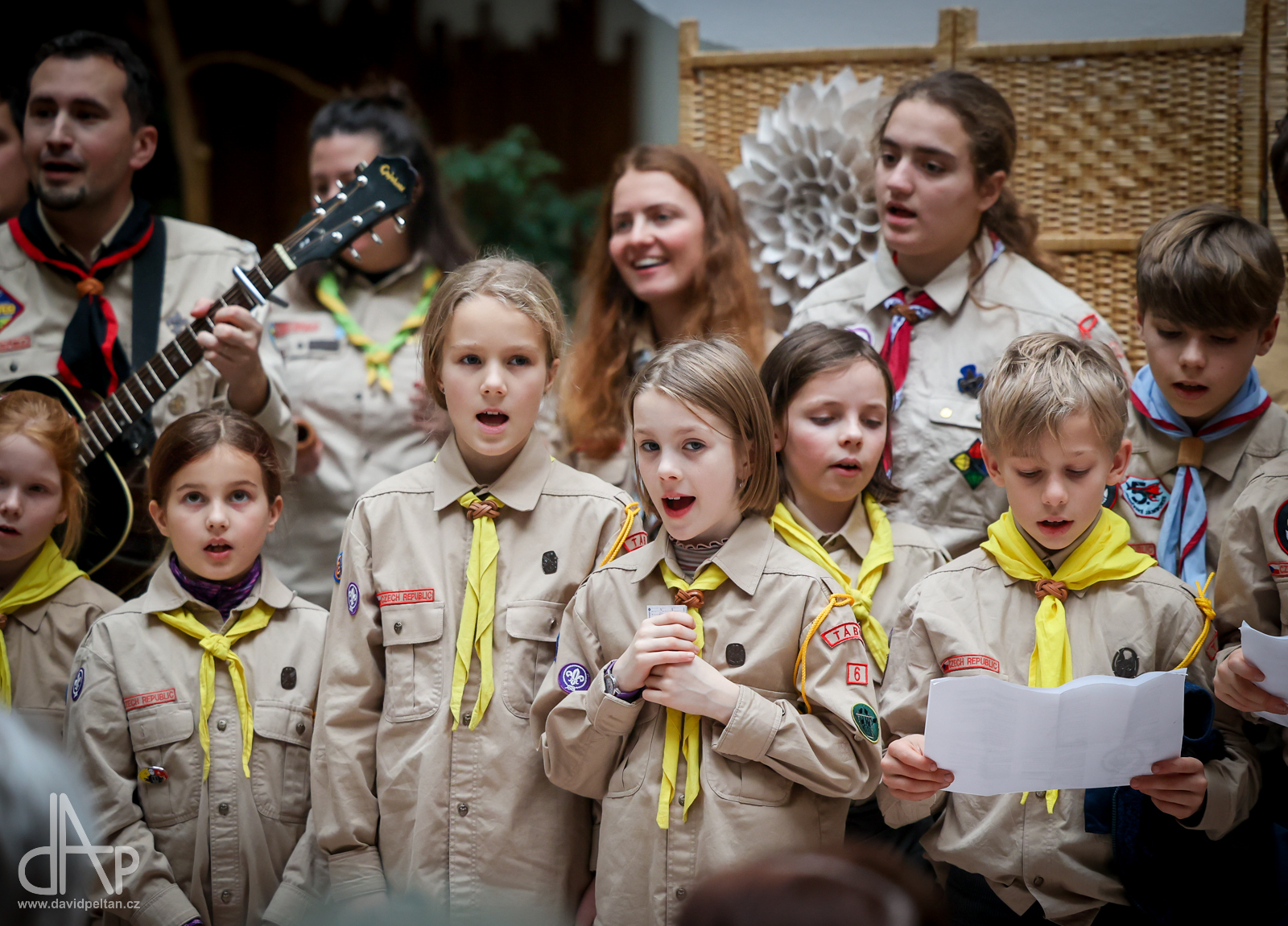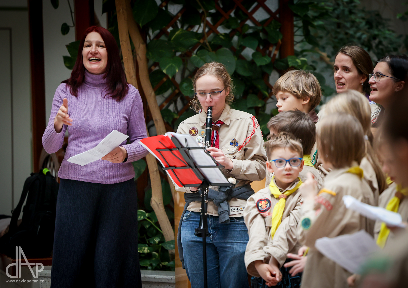 Skautský oddíl Kalich Tábor přivezl před Vánoci betlémské světlo na táborské vlakové nádraží. Další dny ho pak skauti roznášeli nejen do kostelů, ale i domů pro seniory, kde jim předávání světla zpříjemnili i hudebním vystoupením pod vedením Pavly Kohelové Jankové (foto z G-Centra Tábor). Oddíl Modříni Tábor pak na Štědrý den betlémské světlo za doprovodu krátkých blahopřání zástupců církví a hudebního vystoupení předával na táborském Žižkově náměstí.